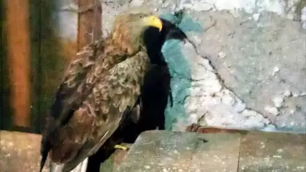 Орла привезли к сотрудникам Тарановского лесничества в Костанайской области с угольного склада. Птицу осмотрел сельский ветеринар и диагностировал перелом крыла. Пока она живет в сарае, кормят ее исключительно мясом. Но вот что дальше делать с орлом, не знают, ведь птица очень похожа на краснокнижную.