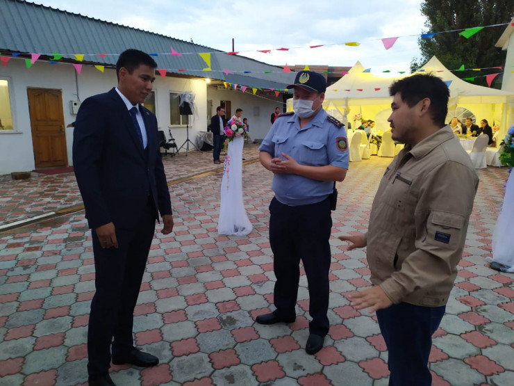 Сотрудники управления контроля качества и безопасности товаров и услуг Наурызбайского района совместно с местной полицейской службой нагрянули в самый разгар торжества и приостановили семейный сбор в микрорайоне Акжар на улице Жана Шаруа.