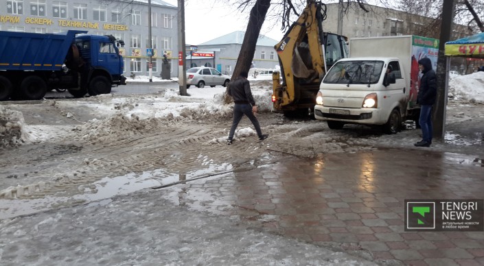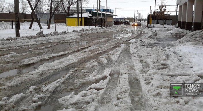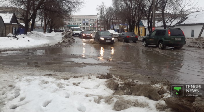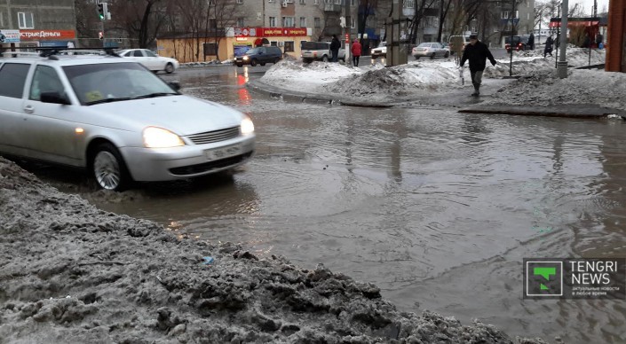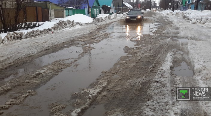 Из-за резкого повышения температуры в Уральске началось активное таяние снега. Вторые сутки идет дождь. Огромные лужи мешают движению автотранспорта и пешеходам даже на центральных улицах. Что касается второстепенных улочек и районов, отдаленных от центра города, там в снежной каше застревают даже джипы. Ситуацию усугубляет отвратительное качество уральских дорог. Огромные рытвины на центральных улицах, открывшиеся из-под снега, сковывают движение, сужая в некоторых местах проезжую часть до одного ряда.