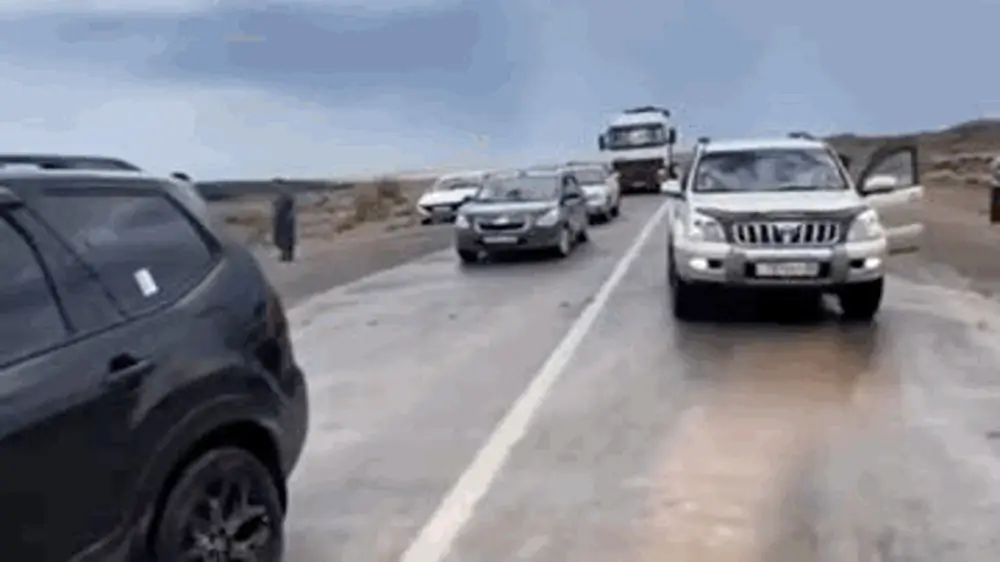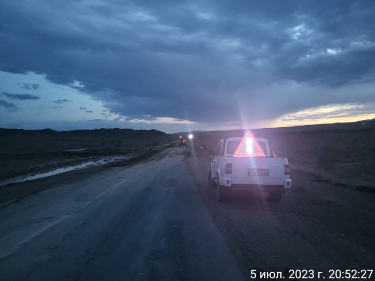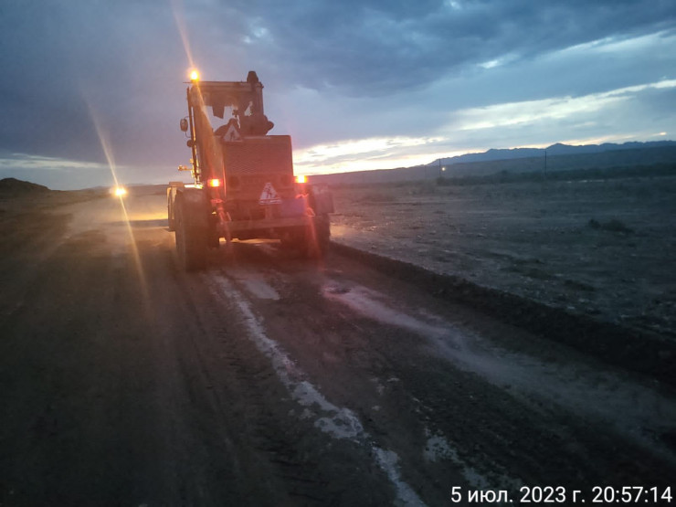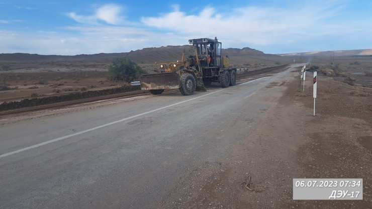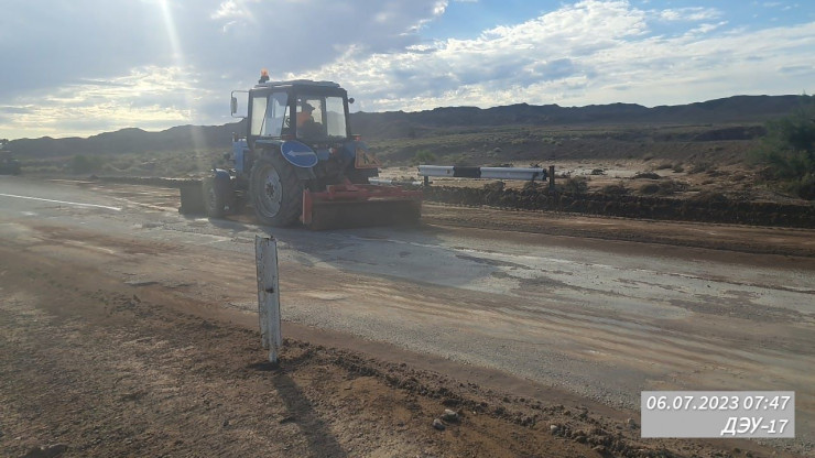 "После прохождения воды имеются разрушения обочины. Силами "Казахавтодор" были организованы работы по отводу воды, временной установке дорожных знаков и очистке проезжей части от грязи, ила и мусора. Задействовано было 5 единиц техники и девять человек личного состава.