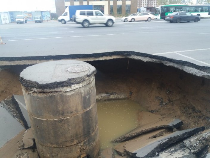 Дорожное полотно провалилось в Нур-Султане