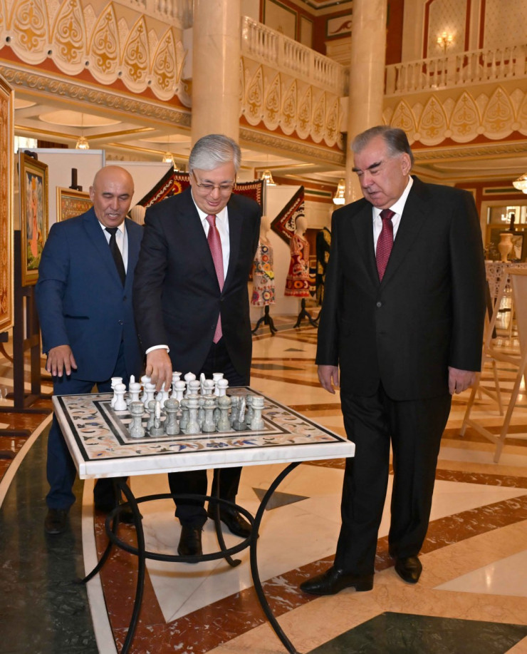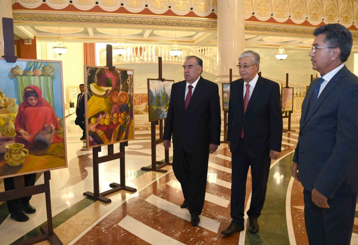 После совещания в Акорде президентов ждала культурная программа. Токаев привез Рахмона в "Астана Оперу". Здесь была выставка народного искусства Таджикистана: ремесленные изделия из камня, дерева, глины, драгоценных металлов, национальные костюмы, картины таджикских художников и фотографии знаковых объектов Таджикистана.