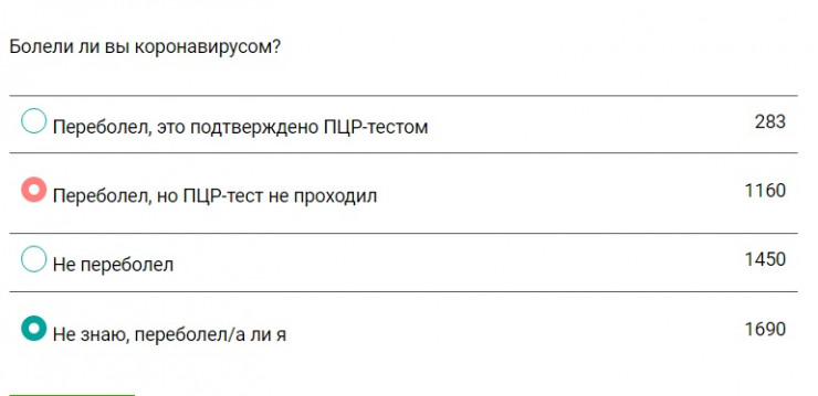 Результаты теста, который редакция проводила 5 августа, показали, что большинство казахстанцев (37 процентов) не знают, переболели они COVID-19 или нет. Четверть опрошенных не проходили ПЦР-тестирование, но уверены, что пережили вирус. 32 процента ответили, что COVID-19 их не затронул. И только у шести процентов коронавирус подтвердился лабораторными исследованиями.