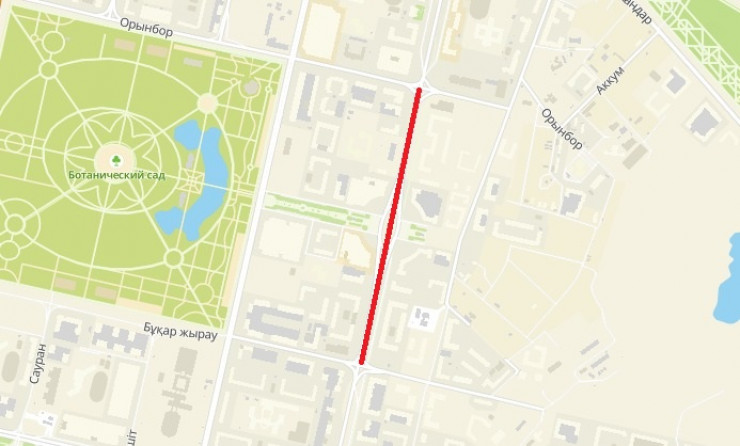 С 8 по 12 августа полностью перекроют проспект на участке от улицы Орынбор до улицы Бухар жырау.