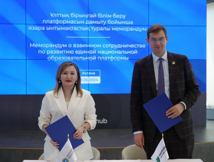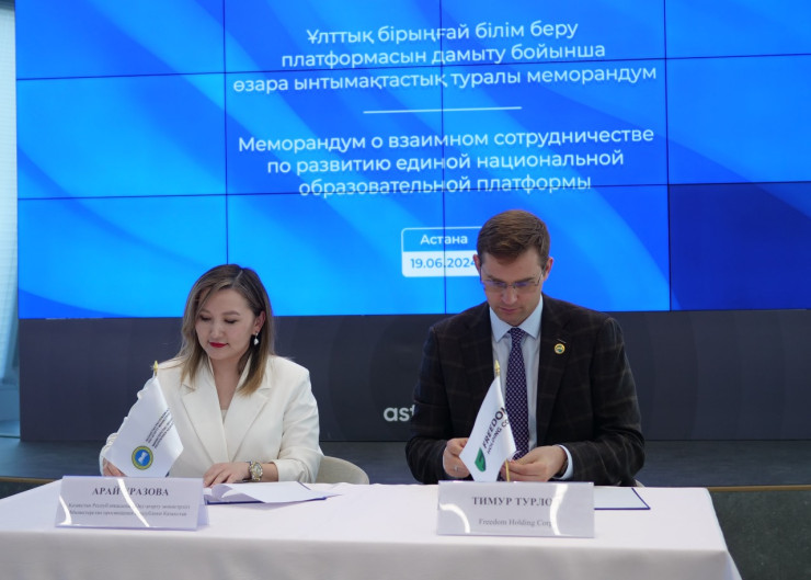 19 июня 2024 года в Astana Hub состоялось подписание меморандума о взаимном сотрудничестве по развитию единой национальной образовательной платформы между Министерством просвещения Республики Казахстан и Freedom Holding Corp.