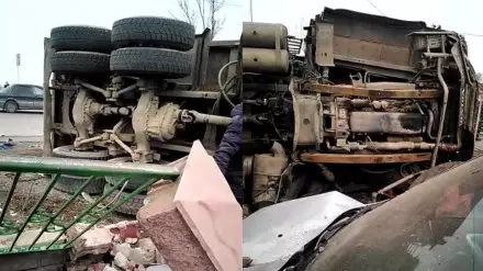 "Грузовик разворачивался, врезался в другой и снес стену базара. Мой автомобиль стоял на парковке на территории базара. Я сидел в машине, собирался выезжать, когда на капот упала кирпичная колонна от разрушенного забора. Помялся капот, смяло фары, и двигатель, думаю, тоже поврежден. Ущерб мы еще не оценили. Сам я не пострадал, но если бы грузовик прошел чуть правее, то колонна могла упасть прямо на меня и раздавить кабину", - рассказал очевидец аварии Улан.