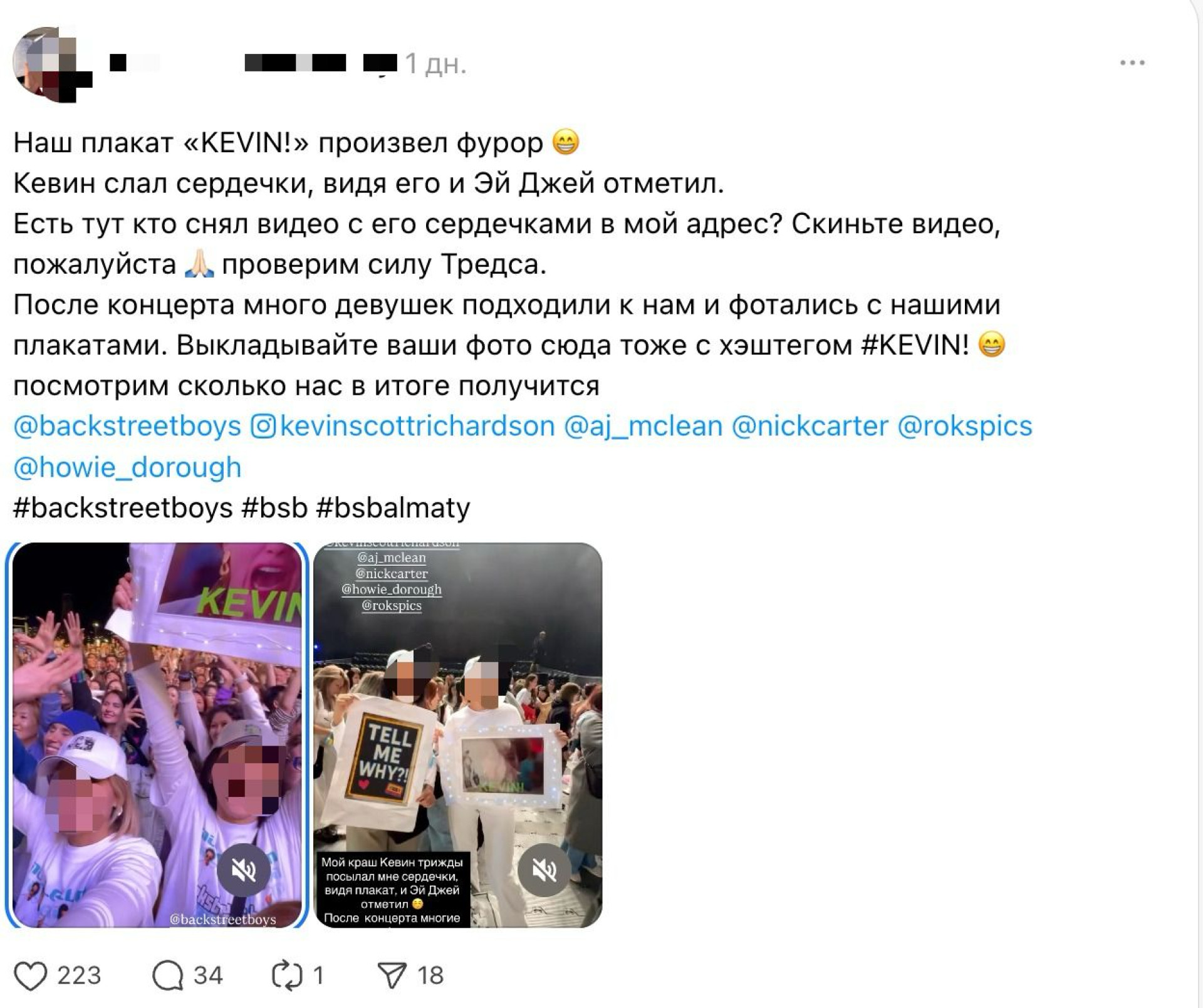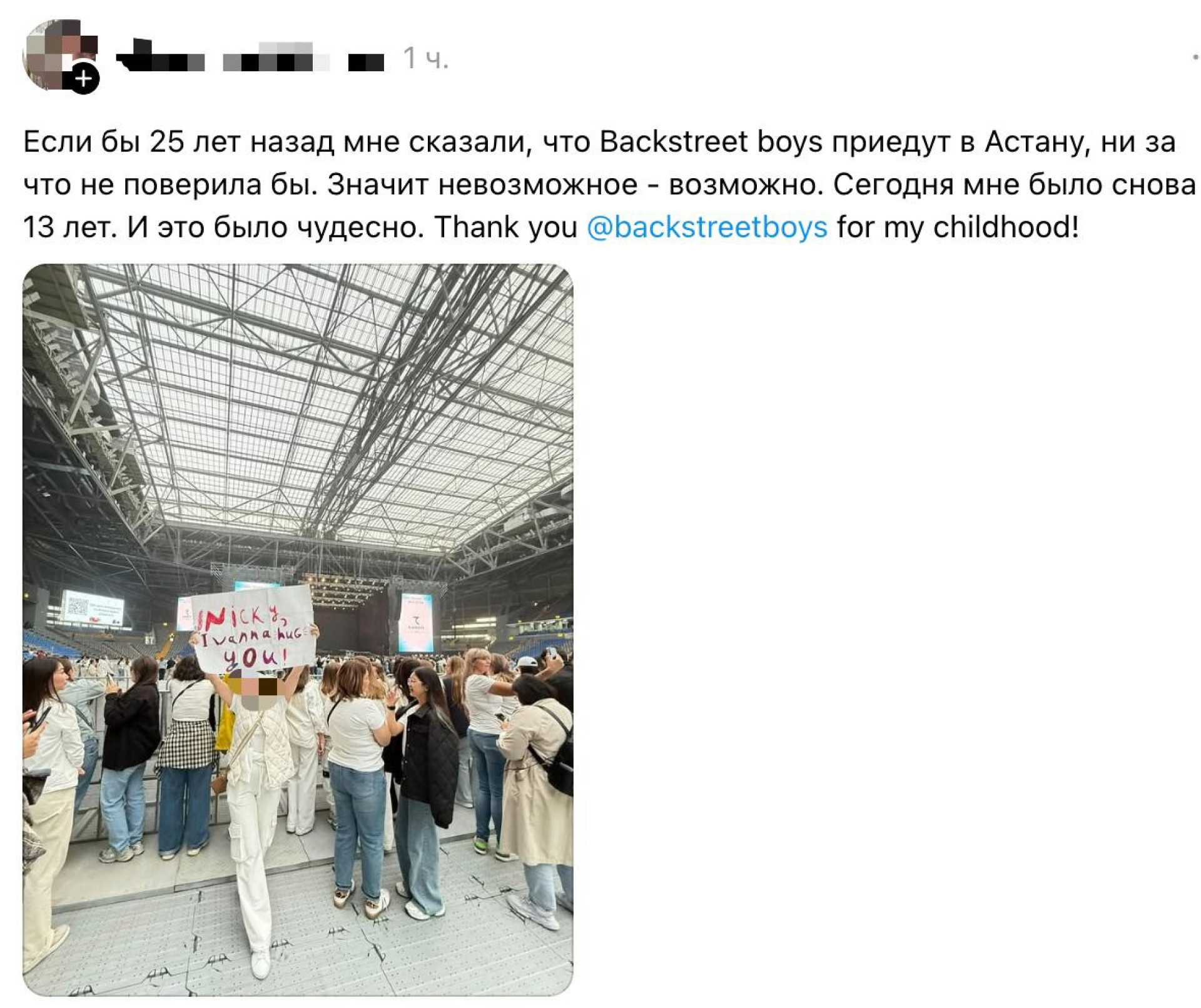 На первых рядах Backstreet Boys с нетерпением ждали их самые преданные поклонники с яркими плакатами: "Tell me why?", "I love Backstreet Boys", "With love from Kazakhstan", "Kevin!", "Nicky, I wanna hug you".