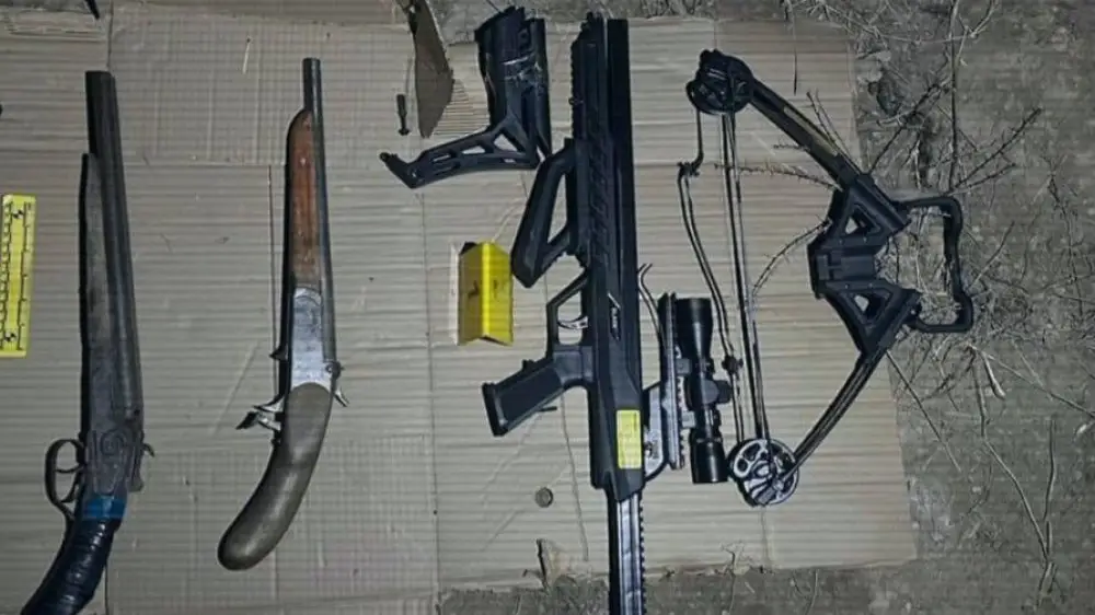 Аналогичные совместные оперативные мероприятия УБОП и ДУИС проведены в Таразе, где найден схрон с 2 обрезами и боевым арбалетом, также похищенным во время январских беспорядков.