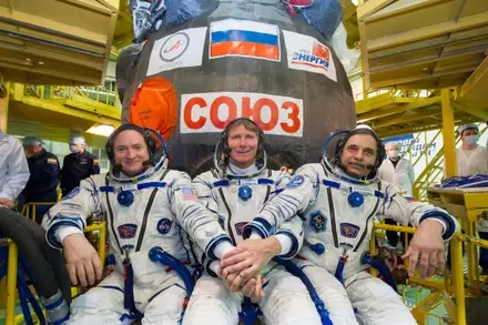 Экипаж МКС провел предполетные тренировки на "Байконуре" Участники основного экипажа транспортного пилотируемого корабля "Союз ТМА-16М" 43/44. Фото © РИА Новости