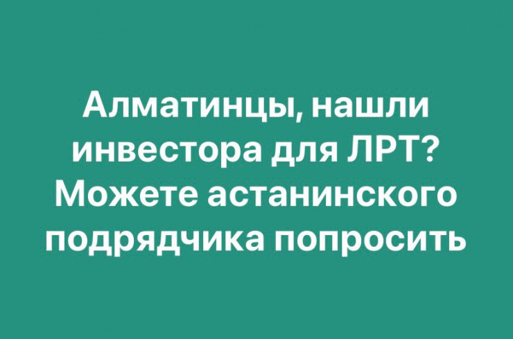 Елордада бітпей қалған LRT құрылысын қазақстандықтар жемқорлық ескерткіші деп атап кеткен еді. Енді Қазнеттегілер "Алматыда да сондай ескерткіш ашылуы мүмкін" деп қорқып жүр.