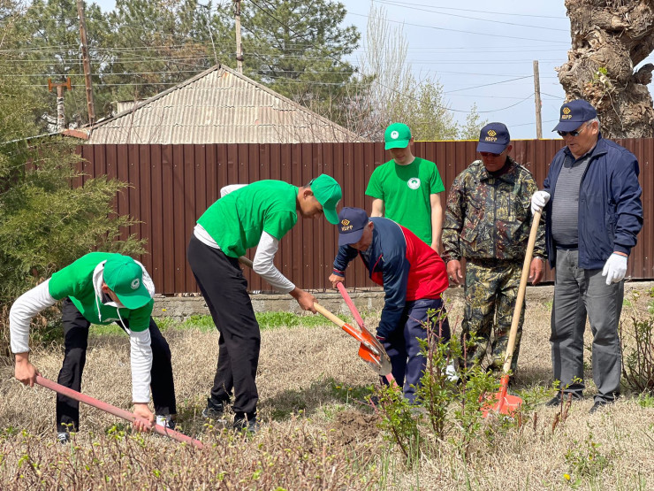 Молодежь и старейшины района очистили дворы домов от твердых отходов и мусора, обработали придворовые участки, подготовили землю к весенней посадке, очистили арыки на участках. Также посадили 50 саженцев плодовых и 50 декоративных деревьев.