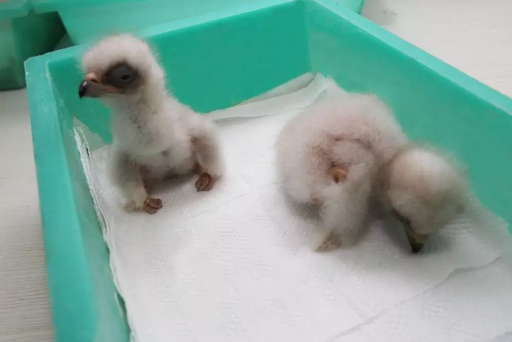 Первые три птенца беркутов в рамках проекта "Внеси свой вклад. Сохрани природу" появились в питомнике "Сункар", передает корреспондент Tengrinews.kz со ссылкой на координаторов проекта. У них большой острый клюв, черные глаза, а тело покрыто белым пухом, имеющим на спине сероватый оттенок. Вес первого родившегося и самого крупного птенца составляет 100 граммов.