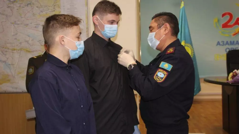 Кроме того, в Департаменте по ЧС ВКО прошло торжественное вручение нагрудных знаков "Төтенше жағдайлардағы ерлігі үшін" и сотрудникам Департамента полиции Восточно-Казахстанской области Диасу Агзамову и Азамату Ибрайханову, которые проявили героизм и спасли при пожаре семью из трех человек в Семее.