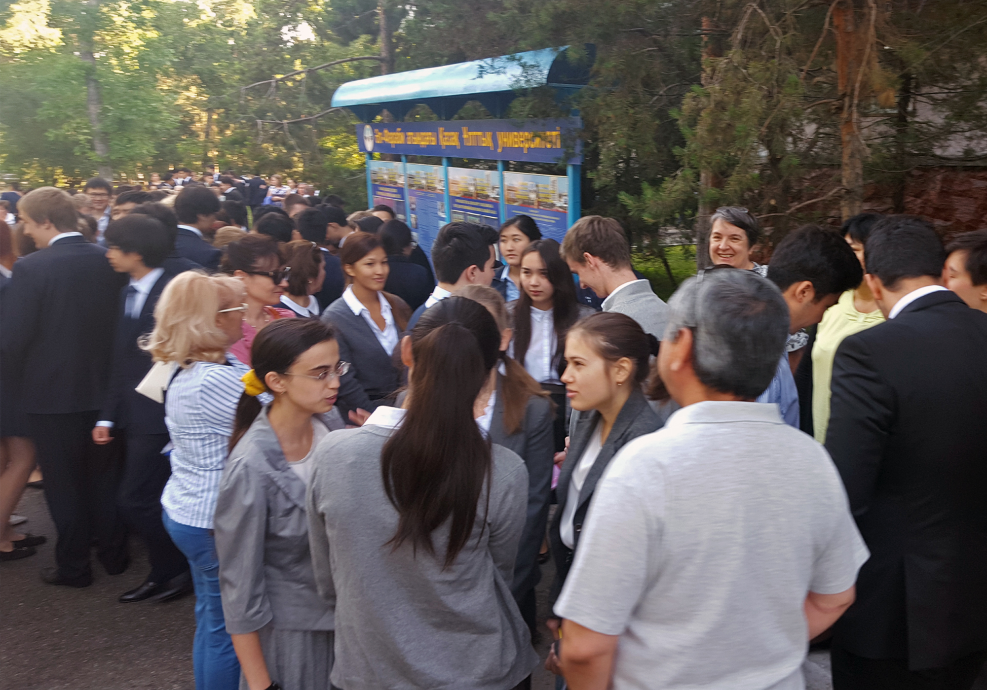 Один из пунктов тестирования для ЕНТ-2015 развернули в старейшем вузе Казахстана КазНУ имени аль-Фараби. Как сообщили представители учебного заведения, участникам экзамена предоставляется питьевая вода, на территории учебного заведения развернули биотуалеты. Также создана специальная аудитория для детей с ограниченными возможностями. На месте дежурит автомобиль противопожарной службы. По словам руководителя пункта приема ЕНТ-2015 в КазНУ имени аль-Фараби Жандоса Кумганбаева, на момент, когда учеников запускали в здание, нарушений выявлено не было. Все мобильные телефоны у школьников изъяли и отдали родителям и директорам школ. Детей запускали через металлоискатель. "После окончания экзамена дети смогут посмотреть свои оценки на специальных стендах или на www.testcenter.kz. Для этого нужно ввести свой ИИН или ИКТ", - сказал он. Напомним, результаты ЕНТ-2015 решили засекретить.