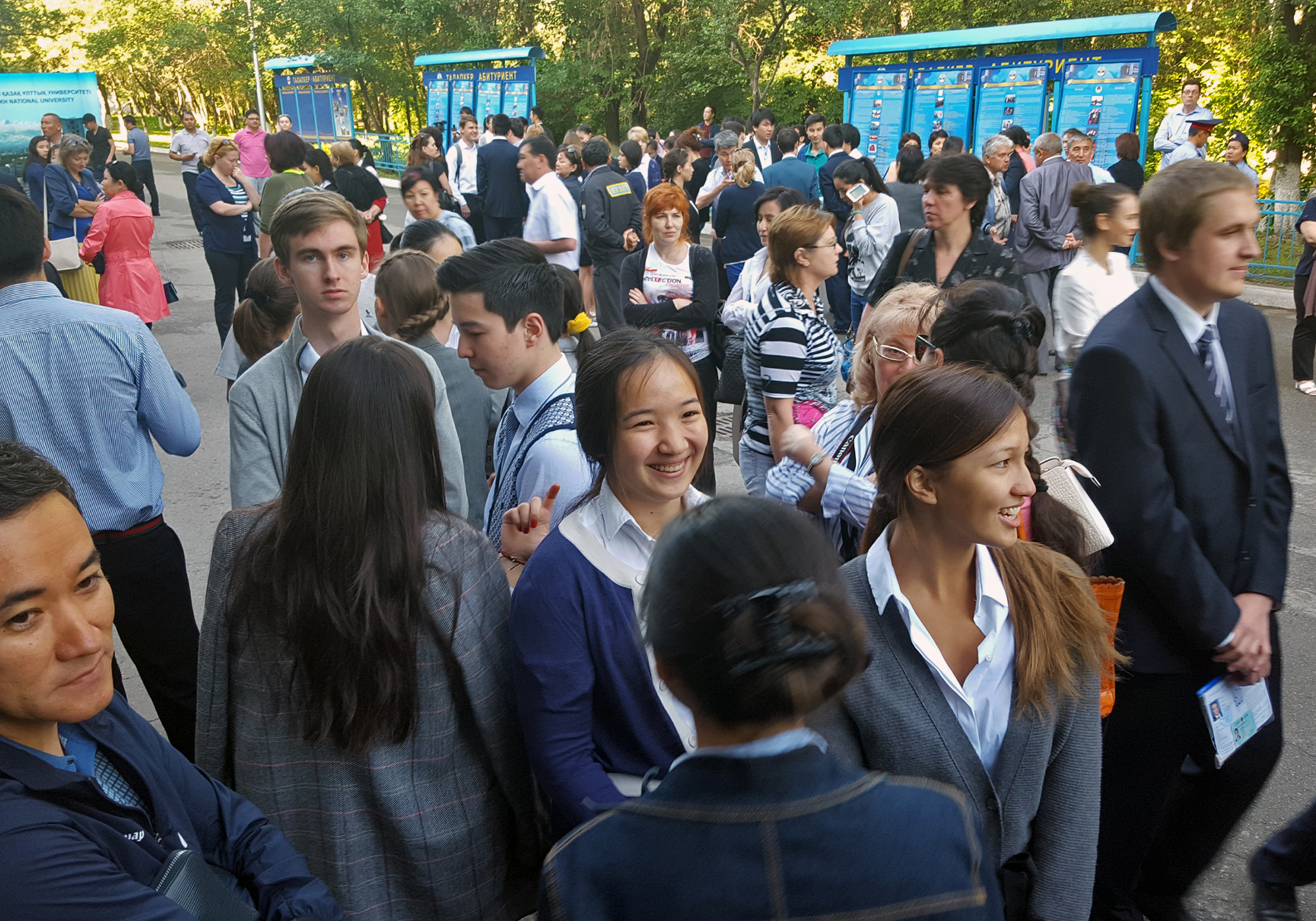 В КазНУ имени Аль-Фараби тестирование сдают выпускники 40 школ Бостандыкского района. Всего заявления подали 1309 человек, разделенных на три потока - 2, 4 и 6 июня. Для поступления в национальные вузы сдающим ЕНТ-2015 надо набрать 70 баллов. Родителей выпускников пригласили посмотреть, как их дети сдают ЕНТ-2015, в компьютерном центре вуза. Там 250 мест. Также за ЕНТ-2015 можно наблюдать из дома через специальный сайт вуза. По словам системного администратора учебного интернет-центра вуза Светланы Торекуловой, такая система действует с 2009 года. "В аудиториях установлены веб-камеры, которые транслируют изображение через Интернет. Все открыто, прозрачно. Большинство родителей сегодня проводили своих детей в зал и решили наблюдать за тестированием в нашем зале", - сказала она. Отметим, веб-камеры можно поворачивать, а изображение на них - приближать.