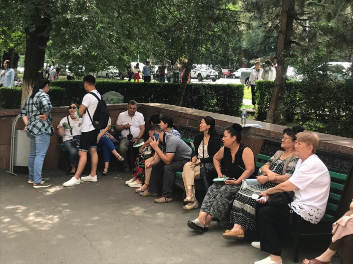 Алматинка Гульмира Гасанова тоже ждет, когда выйдет ее дочь. Говорит, с утра у девочки в горло кусок не лез. Переживает, справляется ли она с заданиями.