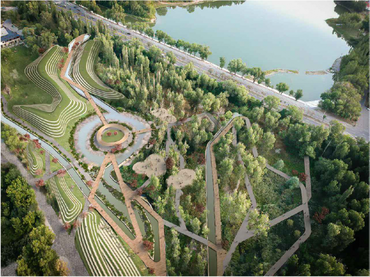"Здесь предусмотрена установка детских и спортивных площадок, использование природного ландшафта для создания озера. Дополнительное озеленение подчеркнет природный ландшафт и уникальность самого места.