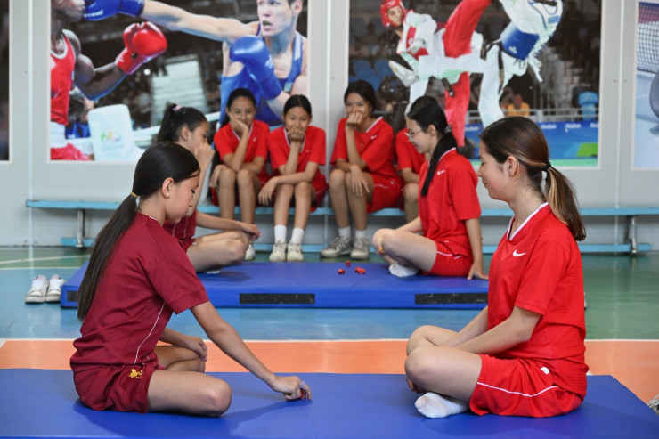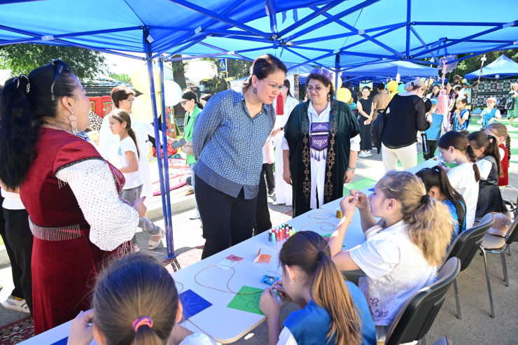 Первым местом посещения стала общеобразовательная школа №57, где впервые в этом году открылся этнический лагерь. На территории школы установлены юрты с традиционным внутренним убранством. В них для школьников устраивают национальные игры, конкурсы и викторины. Детей учат готовить баурсаки, курт, играть на домбре, заниматься декоративно-прикладным искусством. Все это организовано для полного погружения детей в особенности национальных традиций, казахских ценностей, культуры и обычаев.