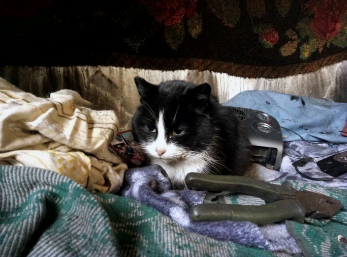 Несмотря на бедственное положение, отец и сын всю жизнь помогают бездомным животным. "Это наш красавец-кот. Старик совсем. Подобрали его побитым, подрался, наверное, с другими котами, - рассказывает Владимир Васильевич. - Кроме вещей, в огне пропали несколько кошек, очень их жалко".
