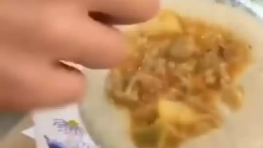 Видео сопровождает надпись: "Вот так студентов бесплатно кормят в павлодарском монтажном колледже. А когда приходит проверка, готовят намного вкуснее и даже дают салатики".