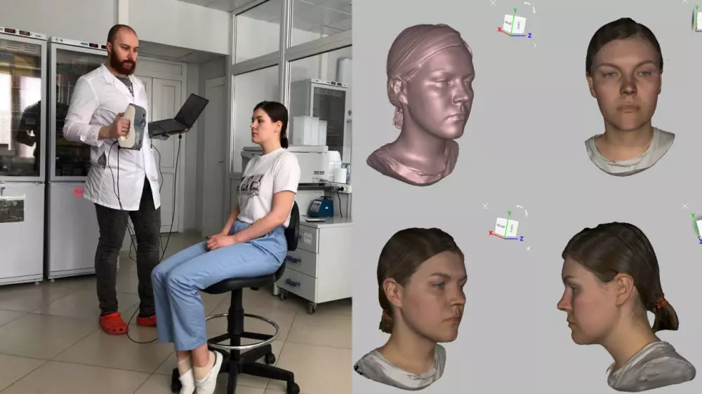 "У каждого человека есть ДНК-код, в котором зашифрована его наследственная информация: черты лица и другие параметры. Сейчас мы создаем базу, которая пополняется данными добровольцев. Они сдают кровь, а мы их фотографируем, сканируем и воссоздаем 3D-модель. Затем выделяем ДНК, исследуем их гены, сравниваем с фотографиями, находим взаимосвязь и закономерность.