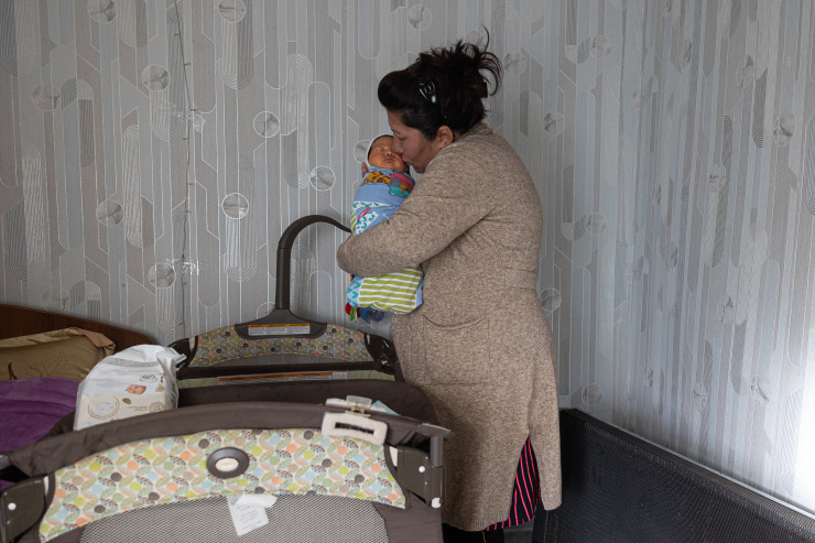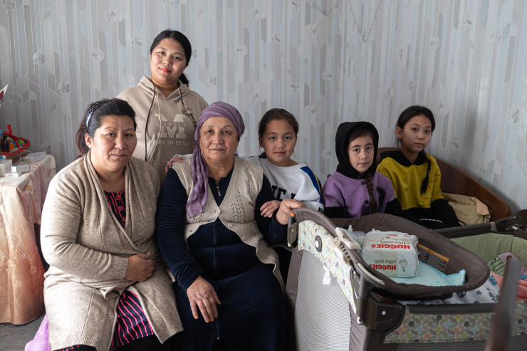 Мухаммат родился 6 декабря. С того дня семейная пара постоянно получает поздравления. Вот и сейчас, пока мы разговариваем, в дом стучатся гости. Многодетную маму пришли поздравить представители Halyk Bank. В числе подарков самое нужное: коляска, радионяня, памперсы.