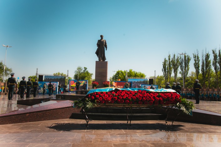Факел Вечного огня, который был установлен на проспекте Толе би, торжественно перенесли в обновленный парк сегодня утром. В церемонии переноса Вечного огня были задействованы ветераны войны и военнослужащие Регионального командования "Юг". Зажечь пламя было доверенно ветеранам. В это же время по улицам города прошло шествие "Бессмертного полка".