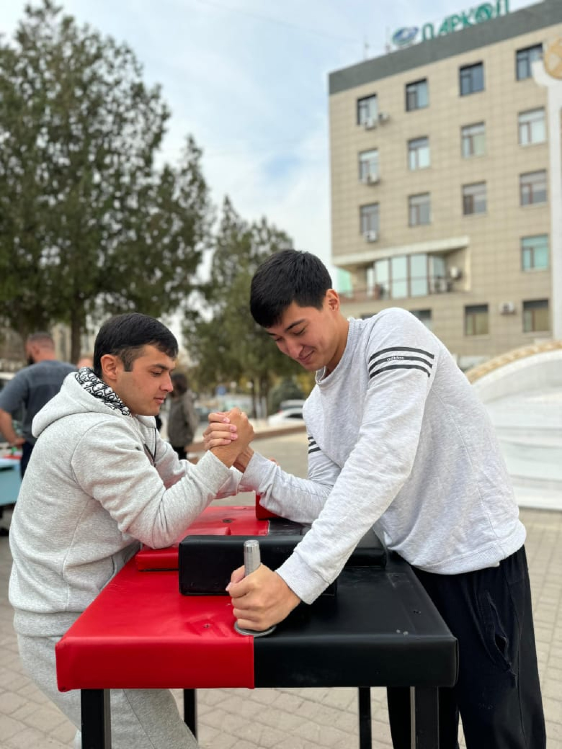 На площади у здания Ассамблеи прошли спортивные соревнования, где были выявлены сильнейшие в армрестлинге. Участники продемонстрировали силу духа и пропагандировали здоровый образ жизни, подчёркивая праздничное настроение дня.
