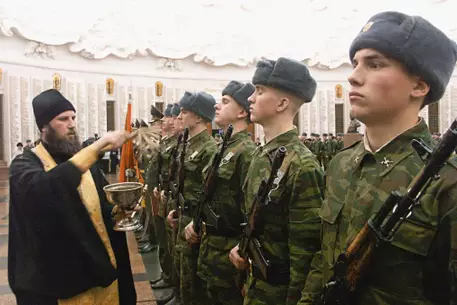 С 1 февраля текущего года в российской армии появится официальная должность для капелланов, сообщает Life.Ru. Военные священники будут получать зарплату, медицинскую страховку и служебное жилье. По словам статс-секретаря министерства обороны РФ Николая Панкова, в должности помощника командира по работе с верующими военнослужащими священники гарантированно получат зарплату в размере 25 тысяч рублей (823 доллара). Панков добавил, что в этом году свыше 2000 священников устроятся на работу в армии. Для этого в минобороны разработали типовой договор со священнослужителем. Военнослужащие сами определят представителя какой церкви пригласят в военную часть. Если более 10 процентов армейцев объявят себя протестантами, то к ним пригласят служителя протестантской церкви. В таком случае, допускает Панков, у командира части могут быть несколько помощников, которые представляют разные религиозные течения. По данным минобороны, 63 процента военнослужащих объявили себя верующими. В 11 военных частях Приднестровья, Абхазии и Южной Осетии уже работают священники. В Северо-Кавказском военном округе работают два православных священника и один мулла. Священнослужители появятся во всех частях российской армии до конца этого года.