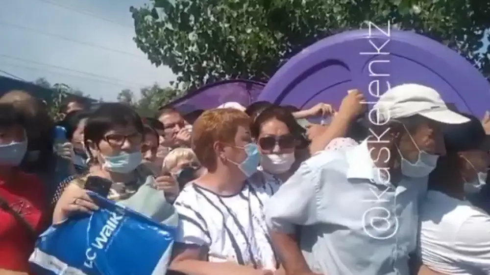 Видео столпотворения появилось на странице паблика @kaskelenkz. На кадрах видно, что люди стоят друг к другу вплотную, пытаясь прорваться за забор. Положенная дистанция в два метра не соблюдается.