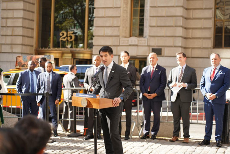 В своем выступлении мэр Нью-Йорка Эрик Адамс поздравил казахстанцев с Днем Республики и отметил позитивную динамику развития отношений между двумя странами.