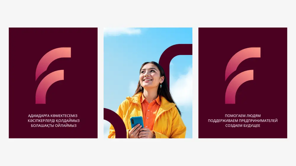 Новые устремления и философия банка отражены в слогане: "Адамдарға көмектесеміз. Кәсіпкерлерді қолдаймыз. Болашақты ойлаймыз".