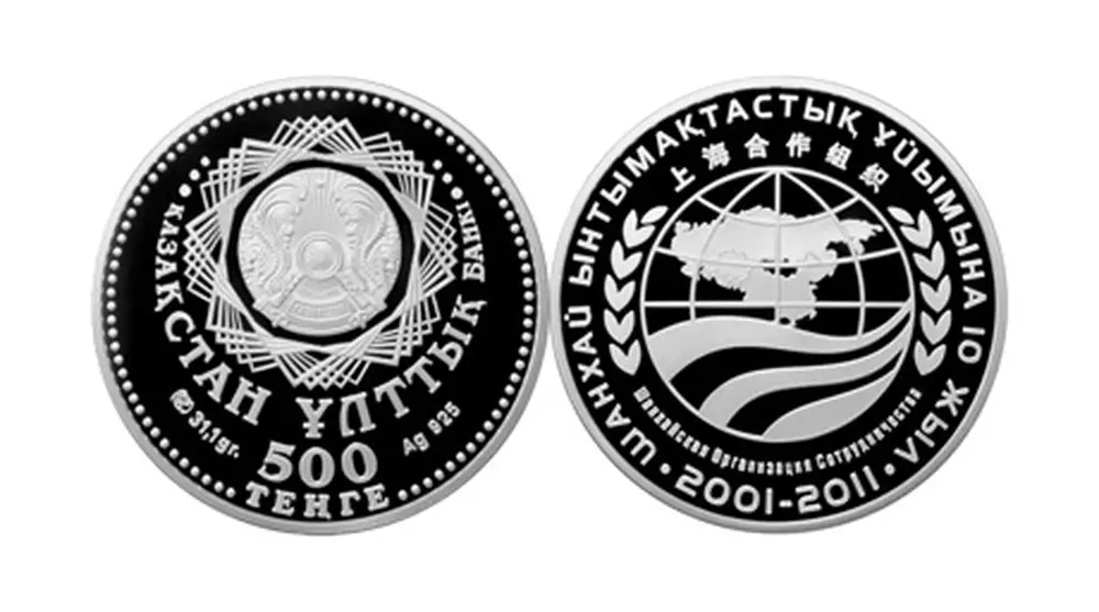 К 10-летию Шанхайской организации сотрудничества (ШОС) Национальный банк Казахстана выпустил серебряную монету, говорится в сообщении Нацбанка.