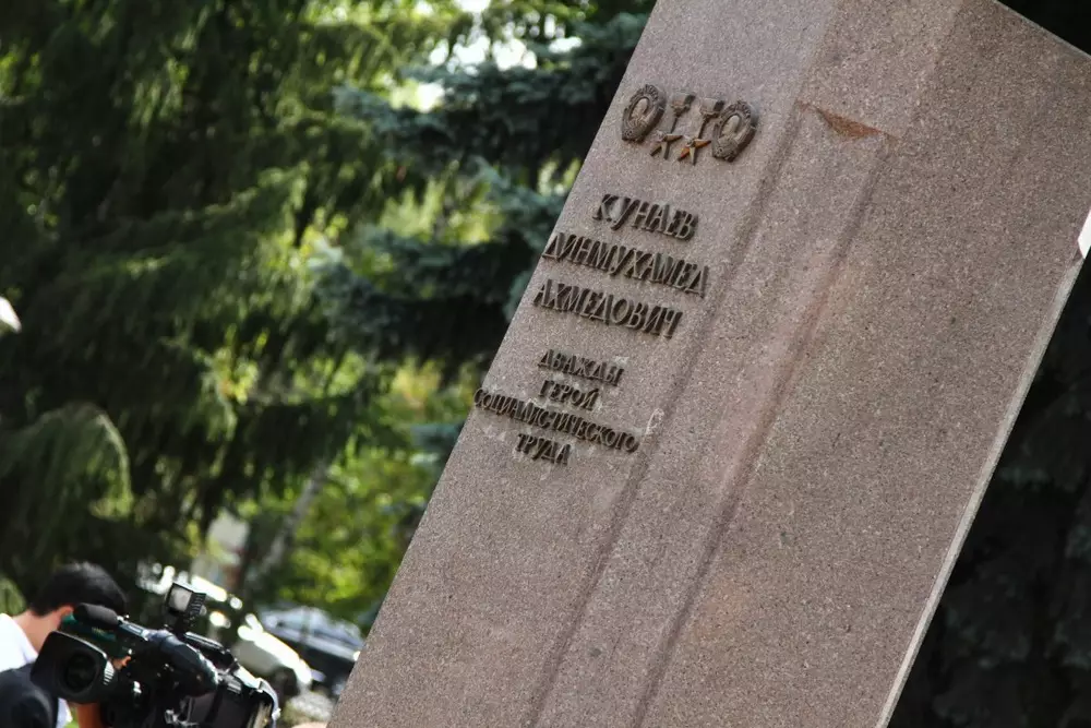 В Алматы состоялось торжественное возложение цветов к памятнику государственного деятеля и ученого Динмухамеда Кунаева по случаю дня его памяти, передает корреспондент Tengrinews.kz. Мероприятие началось в 12.00 в сквере по улице Богенбай батыра, между улицей Кунаева и Тулебаева. Пришедшие возлагали цветы к монументу ученого. Среди них были его друзья, соратники, различные общественные деятели и жители города. От лица акимата в церемонии принял участие заместитель акима Алматы Серик Сейдуманов. Собравшиеся почтили память Кунаева минутой молчания. Член алматинского клуба марафонцев Алпыс Ермаганбетов рассказал, что в честь дня памяти Кунаева 15 человек пробежали дистанцию в 116 километров и финишировали у памятника общественного деятеля. "Этот день считается днем памяти Динмухамеда Кунаева. Мы пробежали марафон, посвященный этой дате. Стартовали с Бартогайского водохранилища по Большому алматинскому каналу, пробежали село Шелек и так далее до города Алматы. В пять утра мы стартовали и вот в 12 финишировали у памятника. Мы сделали памятные майки по такому случаю. На протяжении всей трассы нам аплодировали", - рассказал марафонец. Сразу после возложения цветов собравшиеся могли посетить Дом-музей и квартиру-музей Кунаева, а после для гостей был организован поминальный обед. Генеральный директор международного фонда Кунаева Жаннет Аскарова рассказала, что на церемонию пригласили около 350 человек. На возложении цветов им раздавались памятные брошюры, книги об общественном деятеле и памятные значки. Аскарова напомнила, что в этом году исполнилось 100 лет со дня рождения Кунаева, и поэтому с 12 января (день рождения Кунаева) по 22 августа (день его смерти) в Казахстане проходят различные памятные мероприятия. Также сегодня, 22 августа, в одном из кинотеатров города состоится презентация документального фильма о жизни Динмухамеда Кунаева. "Это новый фильм, был снят по государственному заказу на 100-летие Кунаева. По указу Президента были выделены на это средства. Фильм получился очень интересным. Картина документальная, но в то же время, самого Кунаева играет актер, который от своего лица повествует. Фильм называется "Узелки памяти", - рассказала Аскарова.