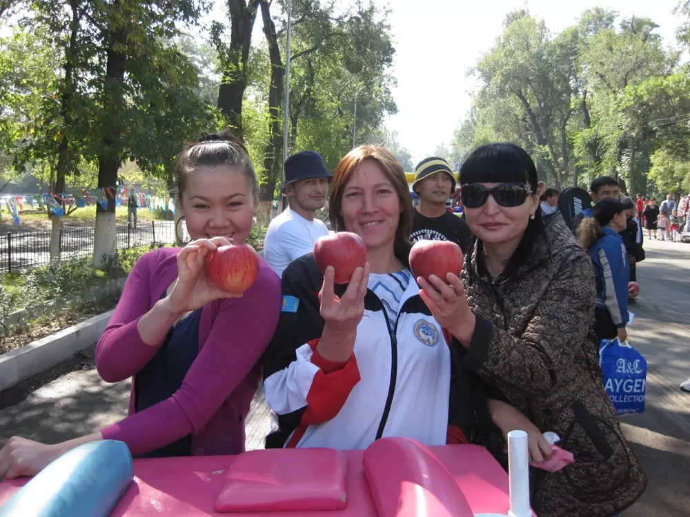 Специально для праздника 37 крестьянских хозяйств Алматы и области привезли на площадь более 13 тонн яблок 30-ти сортов. Похвастаться своими экземплярами пришли и алматинские дачники. Местные кондитеры испекли огромную "Шарлотку" весом 150 килограмм и длиной десять метров. Первым ее попробовал глава города, а затем пирогом угостили всех желающих.