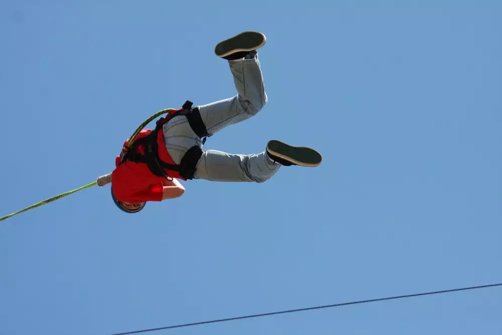 Команда организаторов отметила, что роуп-джампинг - довольно безопасный вид спорта. Они организовывают такие мероприятия уже больше трех лет и за это время несчастных случаев не было, хотя не обходилось без ссадин и царапин. "Вся страховка двойная - база, карабины, поводок. Веревка выдерживает до четырех тонн груза. Нет ничего идеального, но можно сказать, что люди застрахованы от неприятностей на 99 процентов. А адреналин - бешеный, просто шикарный".