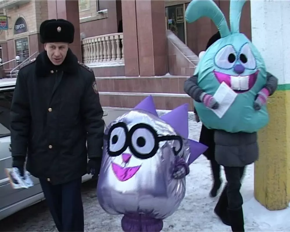 В Костанае дорожные полицейские вышли на дежурство со "Смешариками", сообщает корреспондент Tengrinews.kz. Каждая пятница в Костанайской области проходит под лозунгом "День безопасности пешеходов". Помимо обещанных штрафов и арестов, полицейские решили применить и другие методы. Сегодня, 3 февраля, на дежурство дорожный патруль вышел с героями мультфильма "Смешарики". Старший инспектор по особым поручениям управления дорожной полиции Юрий Панасенко специально для этого привлек своих детей. "Я знаю правила дорожного движения, ведь у меня папа полицейский, он дежурит на дороге. Я тоже вышла сегодня с ним, чтобы люди шли в положенном месте", - рассказала Аня Панасенко. "Я предложил дочке своей 6-летней участвовать в акции. Аня с удовольствием согласилась и стала примерять на себя костюм Ежика, пригласил племянницу, она в костюме Кроша, - рассказал инспектор Панасенко. - Мы - дорожные полицейские подходим к безопасности пешеходов по-разному, вот решили ярко провести акцию и привлечь детей в костюмах мультгероев, чтобы люди запомнили и не переходили дорогу в неположенном месте".