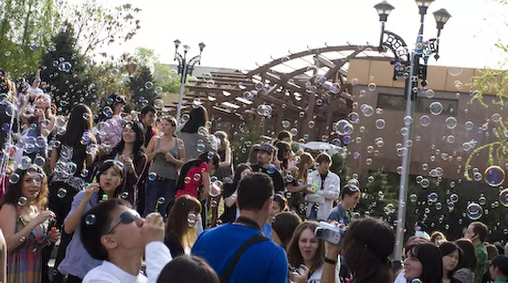 Алматинский Арбат уже третий год подряд становится площадкой для проведения самого большого и веселого, ставшего уже традиционным, флешмоба "мыльных пузырей" Dream Flashmob, сообщает корреспондент Tengrinews.kz.