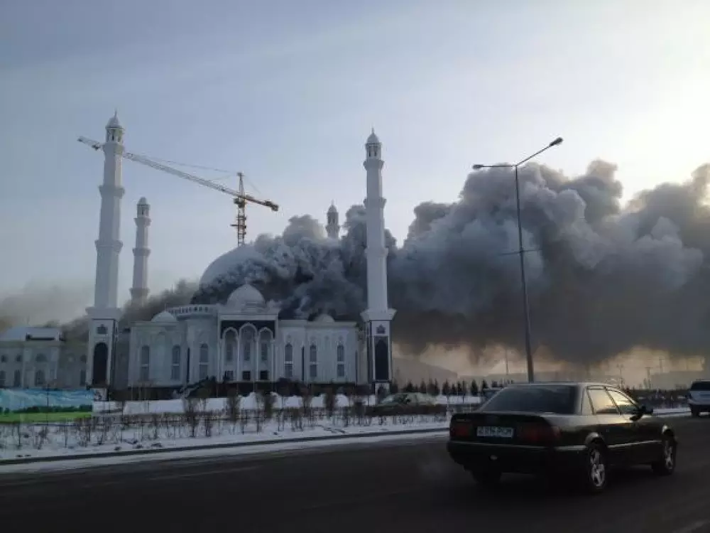 В Астане горит новая мечеть "Хазрет Султан", передает корреспондент Tengrinews.kz. В тушении пожара сейчас задействованы более 30 единиц техники, 171 человек. Как сообщает корреспондент, им пока не удается справиться с огнем. У мечети находятся кареты "скорой помощи". Как сообщили в противопожарной службе города, пожару присвоена высочайшая, третья, степень сложности. Движение машин в районе горящей мечети перекрыто. Близ места ЧП большое скопление людей, следящих за происходящим. На место пожара прибыл глава МЧС Владимир Божко. По его сведениям, горят строительные леса под куполом, там находится деревянная обрешетка, возгорание произошло на ней. "Жертв пока нет. Проверили подвал, вывели 13 человек, которые были непосредственно в зоне возгорания. Задействованы у нас 32 машины сейчас, но готовность есть всего пожарного гарнизона", - сказал Божко. По его словам, в тушении пожара применяются самые последние средства, задействовано специальное подразделение противопожарной службы. "Ситуация сложная, потому что купол сам по себе очень высокий, и сейчас по стенам сотрудники противопожарной службы подают стволы на самый верх. Потому что внизу пожара, как такового, нет", - сообщил глава МЧС. Он сказал, что характер дыма изменился - приобрел серый цвет. Организован штаб по ликвидации пожара. Площадь пожара составила примерно 300 квадратных метров. "Причина устанавливается. Скорее всего, сварные работы", - сказал Божко. Корреспондент Tengrinews.kz находится на месте пожара, он следит за развитием событий. Строительство мечети "Хазрет Султан" началось в Астане в октябре 2010 года. Рассчитанная на пять тысяч мест, она расположена на площади более 11 гектаров. Площадь сооружений составляет 17 700 квадратных метров. Это крупнейшая мечеть в Центральной Азии. Высота ее главного купола - 51 метр, диаметр - 28,1 метра. Высота каждого из четырех минаретов - 77 метров.