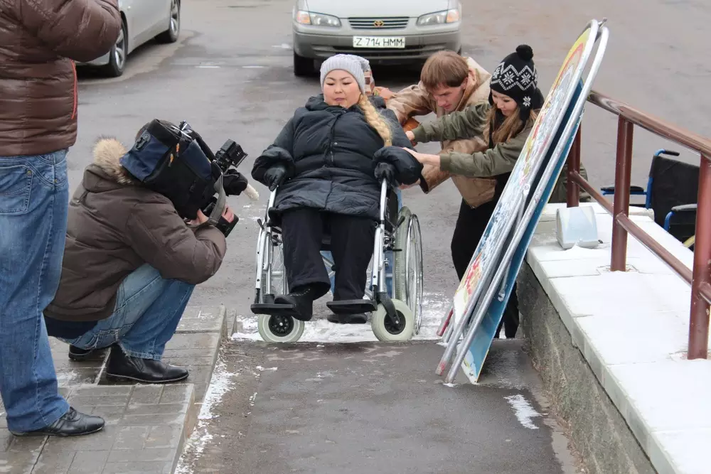 Депутата парламента поддержали двое: исполнительный секретарь "Жас Отана" при НДП "Нур Отан" Нурлан Утешев и депутат кокшетауского маслихата Олег Толкайлов. Сыздыкова, Утешев и самый молодой депутат в Казахстане Толкайлов отправились на прогулку по административному центру Астаны в инвалидных колясках. Стартовали от депутатского дома "Нурсая". Решили заглянуть в бутик, расположенный в этом жилом комплексе. Не вышло. Магазин недешевой одежды оказался необорудованным пандусом. Депутаты и партиец поехали дальше. При подъемах и спусках на тротуарах они не смогли обойтись без посторонней помощи. И уж совсем туго пришлось на въезде во двор депутатского ЖК. Тут-то Бахыт Сыздыкова и вывела всех на чистую воду.