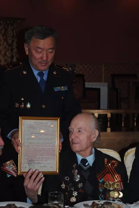 В Кокшетау областное ДВД вручило нескольким ветеранам Великой Отечественной войны наградные листы к орденам и медалям, датированные 1944-1945 годами, которые удалось найти в архивах военных лет Минобороны России спустя 67 лет. Об этом сообщает корреспондент Tengrinews.kz со ссылкой на пресс-службу ДВД Акмолинской области. На торжественное мероприятие были приглашены более 30 ветеранов ВОВ, тружеников тыла и вдов солдат. Как пояснили в полиции, всего в ДВД области осталось восемь ветеранов: Александр Бабичев, Сагнай Махметов, Иван Марченко, Дмитрий Несвитеев, Иван Емелин, Габидулла Булатов, Алексей Кныш и Мурзагали Кажимов. Помимо денежных премий, двое фронтовиков получили наградные листы, которые не выдавались вместе с орденами и медалями, а хранились в архивах России. "Многие ветераны не могли сдержать слез, выражая слова благодарности полицейским", - отмечается в сообщении пресс-службы. Так, например, Ивану Емелину был вручен наградной лист к ордену "Красной звезды" за события 7 августа 1944 года, когда он будучи старшиной "своим личным примером отваги и мужества воодушевлял" бойцов, в результате действий которых противник был выбит с занимающей позиции. "Отделение Емелина, заняв высоту, закрепилось. После чего противник предпринял несколько контратак, чтобы вернуть утраченные позиции, но в результате правильной расстановки основных средств и хорошей связи с соседними отделениями, отделение Емелина отразило успешно три контратаки противника. При отражении контратак противника был тяжело ранен старшина Емелин Иван Тимофеевич и награжден орденом "Красной Звезды", - было написано в наградном листе, подписанном командиром отдельной роты ПТР, капитаном Савчуком. Также наградной лист к ордену "Красной Звезды" был вручен ветерану ВОВ Александру Бабичеву, который всю войну принимал непосредственное участие во многих боях с немецко-фашистскими захватчиками и является участником обороны Сталинграда. Будучи командиром отделения за село в районе города Старая Русса Бабичев, продвигаясь со своим отделением в боевых порядках пехоты, корректируя огонь артиллерии, был ранен осколком снаряда в ногу. После госпиталя он вернулся обратно в свою часть. При наступлении частей Красной Армии во время окружения 16 немецкой армии захватил вражескую пушку и, ведя огонь этой пушкой по отступающим частям противника, был вторично ранен. "При выздоровлении снова возвратился в строй и принимал участие в боях с немецкими захватчиками в составе войск Донского, Юго-Западного и 3-го Украинского фронта. На оперативной работе в ОКР "Смерш" с июня 1944 года. За это время показал себя дисциплинированным, политически грамотным оперативным работником. Достоин награждения правительственной наградой - орденом "Красной звезды", - было написано в документе, хранившемся почти 70 лет.