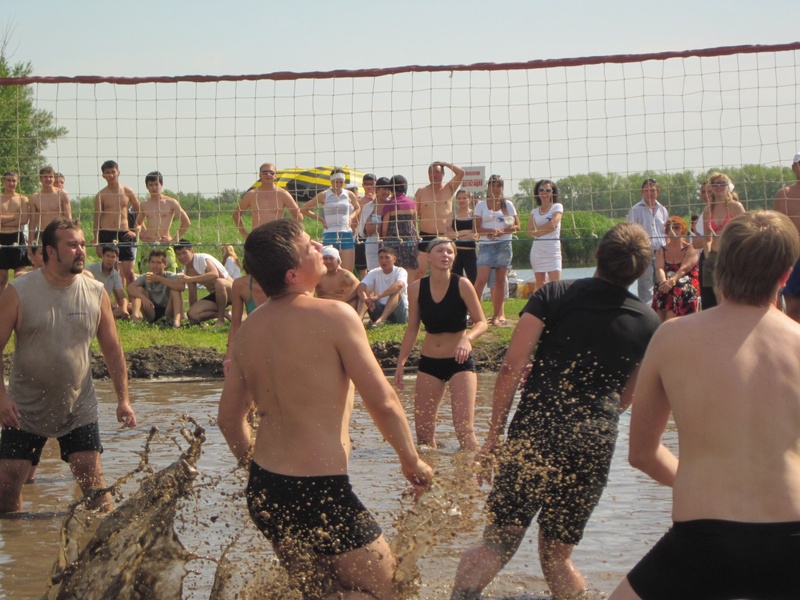 Поиграть в грязевой волейбол пожелали журналисты, работники акимата, медицинских учреждений, предприниматели и спортсмены-любители На пляже вырыли площадку для игры, залили водой и натянули сетку. Поединок шел по олимпийской системе - навылет. Причем каждая команда настраивалась на свой игровой лад. Одни играли серьезно, не хотели ударить в грязь лицом и упорно боролись за победу. Другие же наоборот с радостью поплавали в грязи.