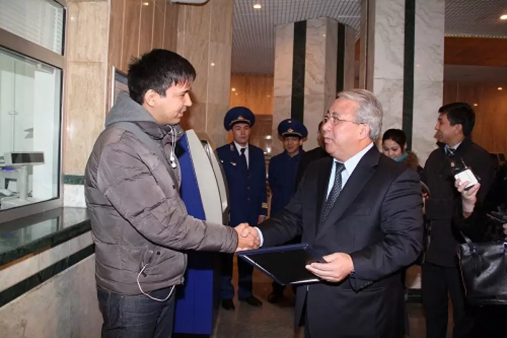 Счастливого алматинца на станции Жибек жолы ждали руководители ГКП "Алматыметрополитен" и журналисты. Сертификат миллионного пассажира, смарт-карту на 60 поездок, действующую в течение 90 дней, и цветы вручил сам директор КГП "Метрополитен" Мурат Укшебаев.