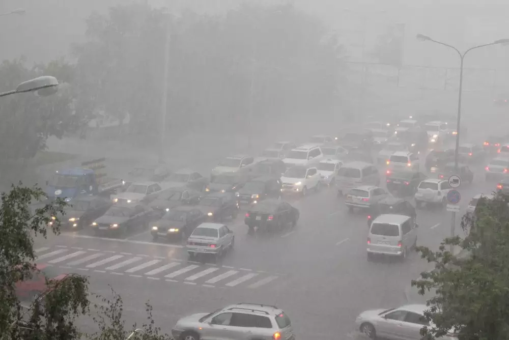 Во вторник 31 июля на Астану обрушился сильный ливень с градом и порывистым ветром, сообщает корреспондент Tengrinews.kz.