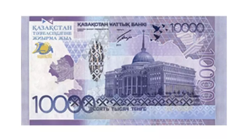 Нацбанк выпустит новую 10-тысячную банкноту к 20-летию Независимости. Об этом корреспонденту Tengrinews.kz сообщили в пресс-службе Карагандинского филиала Национального банка Казахстана. Народ Казахстана будет отмечать 20-летие Независимости 16 декабря 2011 года, а юбилейная купюра выйдет в обращение раньше - 4 июля. Тираж банкноты пока неизвестен. Размер одной купюры составит 149 миллиметров в длину и 79 - в ширину. Преобладать на купюре будут фиолетовый и синий цвета. На лицевой стороне банкноты будут изображены: монумент "Казах ели", который находится в Астане, голуби, буквенное обозначение номинала на государственном языке и надпись "Қазақстан ұлттық банкі". На обратной стороне главным изображением будет здание Акорды, цифровое обозначение номинала банкноты, а снизу буквенное обозначение на русском языке. Сверху посередине напечатают надпись "Қазақстан ұлттық банкі" и подпись главы Нацбанка.