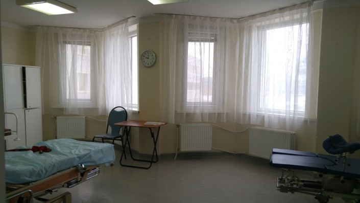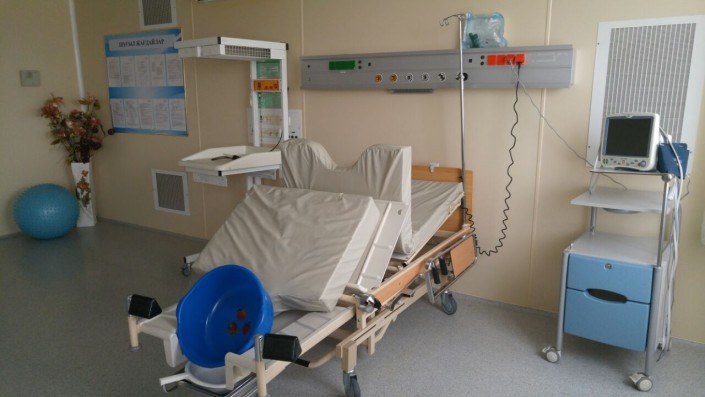 Матрацы, которые используют во время родов, стоят возле каждой палаты. Они проходят обработку после каждого пациента, а затем застилаются одноразовым постельным бельем.