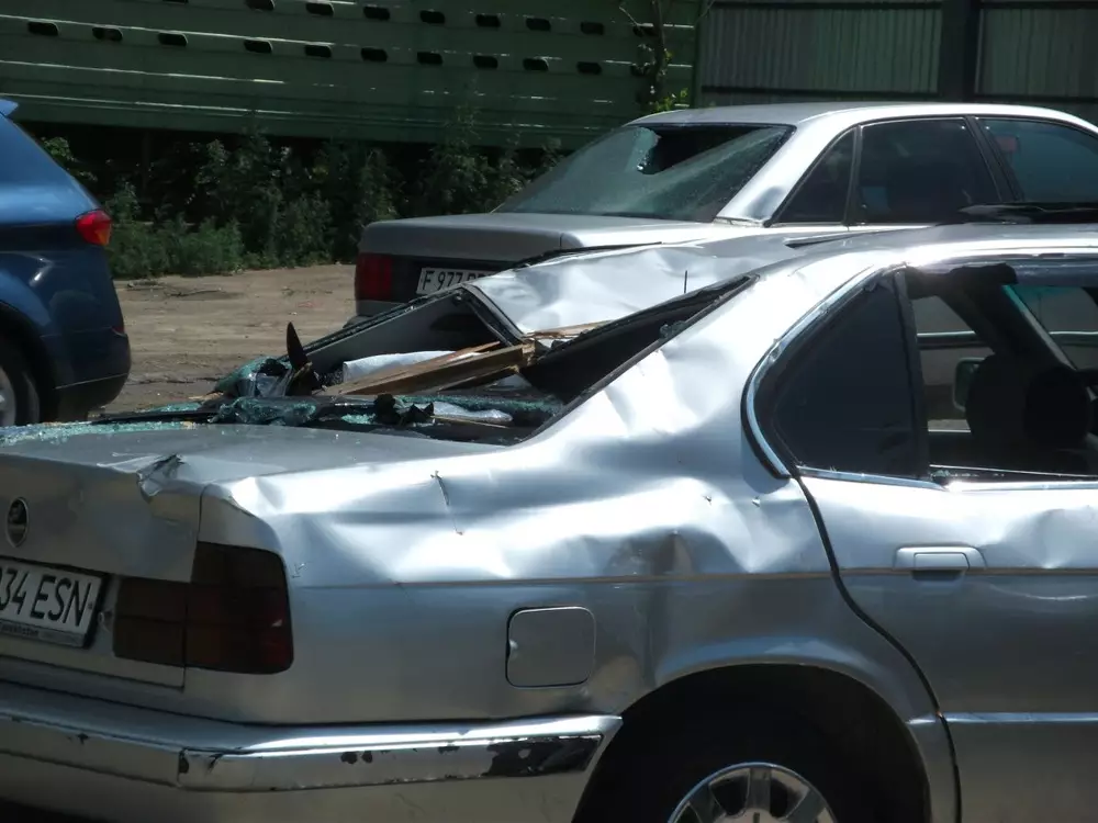 Ветер также сорвал крышу торгового центра по проспекту Ауэзова. Кровля упала на рядом стоящую автомобильную стоянку. Пострадали около десяти машин. Сила ветра по информации дежурного УЧС составляла 18 метров секунду.