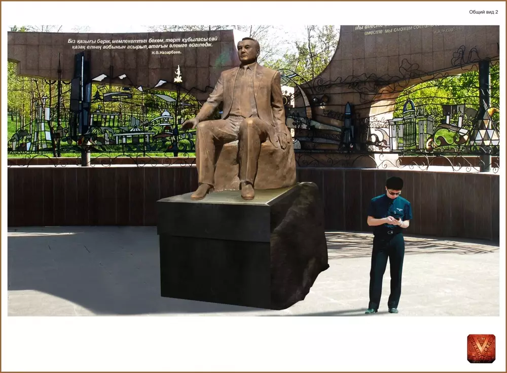В Алматы появится скульптура Президента Нурсултана Назарбаева, сообщает корреспондент Tengrinews.kz. По информации, скульптурная композиция "Казахстан", посвященная 20-летию независимости страны, состоит из двух частей: гранитного монумента и фигуры Назарбаева. Торжественное открытие комплекса состоится 11 ноября 2011 года в 11 часов в парке Первого Президента. "Скульптурная композиция выполнена из различных материалов. Есть и бронза, и гранит, и мрамор. На переднем плане - скульптура главы государства, выполненная в бронзе. Сзади гранитный монумент в виде двух крыльев беркута", - рассказал информированный источник. На заднем плане композиции изображены два города: Астана и Алматы. "Своего рода, это символы независимого Казахстана, периоды его становления. Связь между прошлым и будущим нашей страны. Кроме того, на общем фоне присутствуют элементы национального орнамента и цитаты из речи нашего Президента, выполненные из позолоченных букв. Монумент изготовлен с помощью техники под названием "кованая графика", - пояснил собеседник корреспондента. Авторами мемориального комплекса стали городское управление архитектуры и градостроительства, ГКП "Алматы кала курылыс кадастыры", а также управление строительства Алматы. Фигуру Президента изготовил скульптор Шохан Тулеш. Ранее сообщалось, что в Гагаузии будет установлен памятник Президенту Казахстана Нурсултану Назарбаеву. Башкан (глава) Гагаузии Михаил Формузал отметил, что установка бюста Назарбаеву станет продолжением практики по открытию памятников выдающимся политическим деятелям тюркского мира на Аллее славы города Комрат.