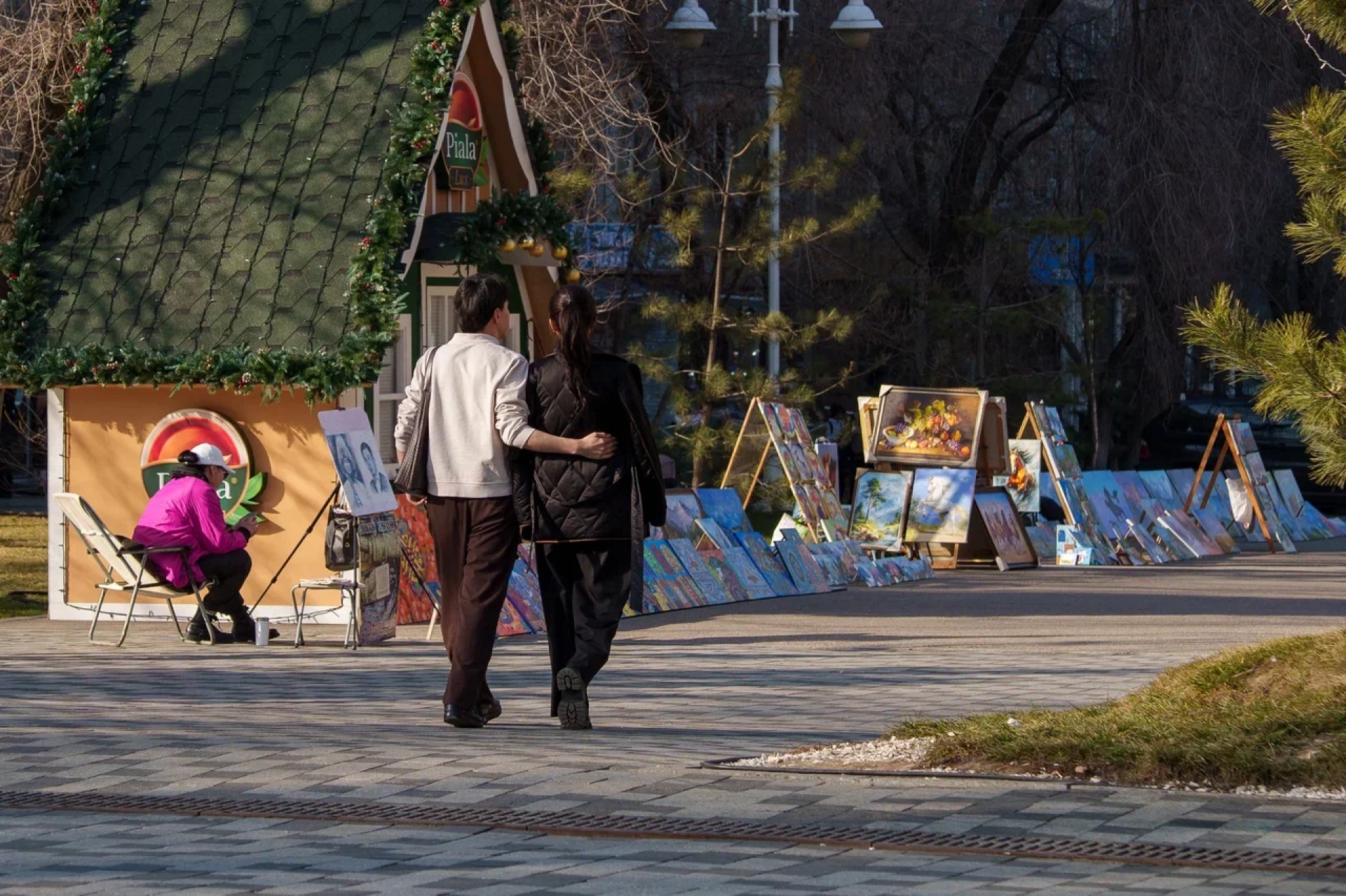 Утром температура воздуха в Алматы начала стремительно расти и уже к полудню достигла +20 градусов. На улицах стало заметно больше людей. Парки и скверы наполнились гуляющими.