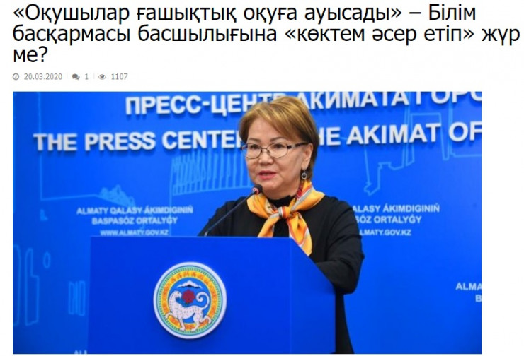 18 наурызда Алматы қаласы білім басқармасының басшысының орынбасары Гүлнар Айтқұлова қашықтан оқу форматын түсіндіремін деп сөзден сүрінген болатын. Ол қашықтан оқу форматы дегенді "ғашықтық оқу" деп түсіндірген болатын.